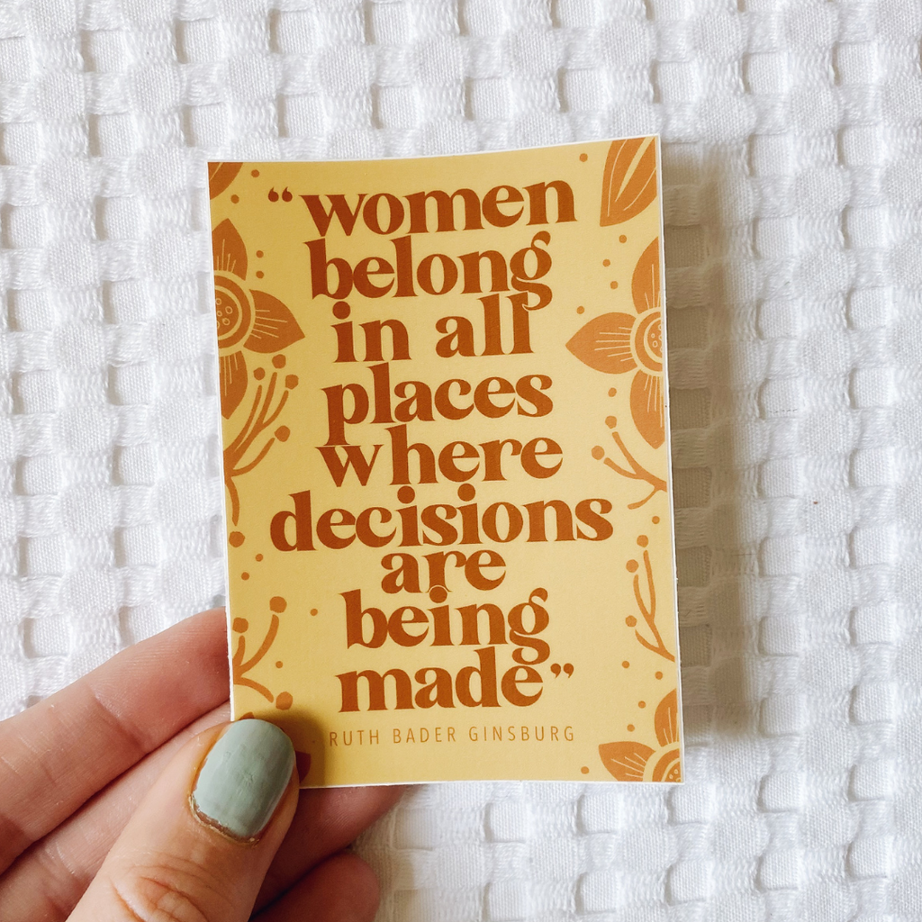 This sticker set features a portrait of Ruth Bader Ginsburg and a quote by her as well. They are both 100% machine washable and waterproof, and printed on high quality vinyl.