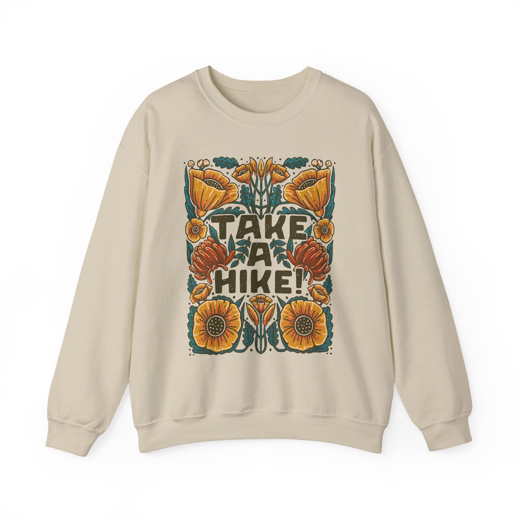 Take A Hike! Floral Crewneck Sweatshirt — Retro Nature Graphic